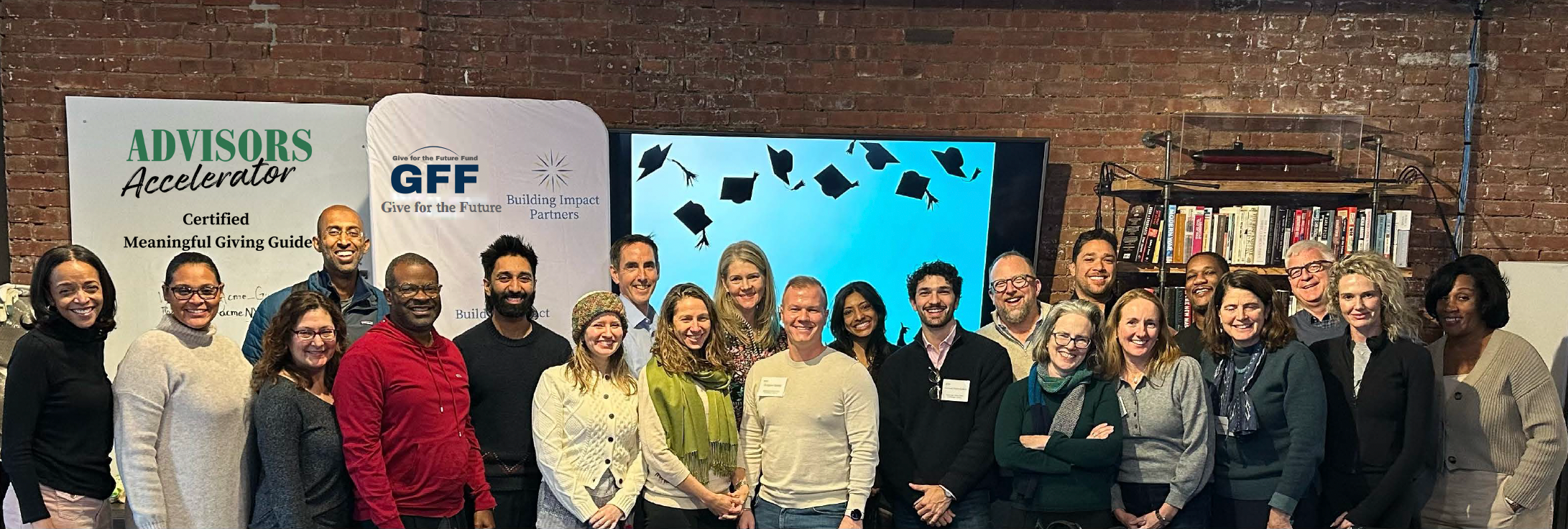 As a mission driven philanthropic advising practice, we at Building Impact Partners have navigated many of these same challenges ourselves. Over the past ten years we've helped our clients give away over $1.5 billion--and we have learned all kinds of lessons along the way. Inspired by the potential so many of us see for philanthropy advising to play a key role in getting more resources flowing to where they are most needed, over the past several years we've been going deep on a learning journey about the art and practice of truly influential advising with a growing community of over 60 advisors. The result is Advisors Accelerator. Uniquely crafted by and for philanthropy advisors, and now entering its fourth year, this program serves both established advisors looking to polish their practice as well as emerging advisors looking for a strong start in the field.