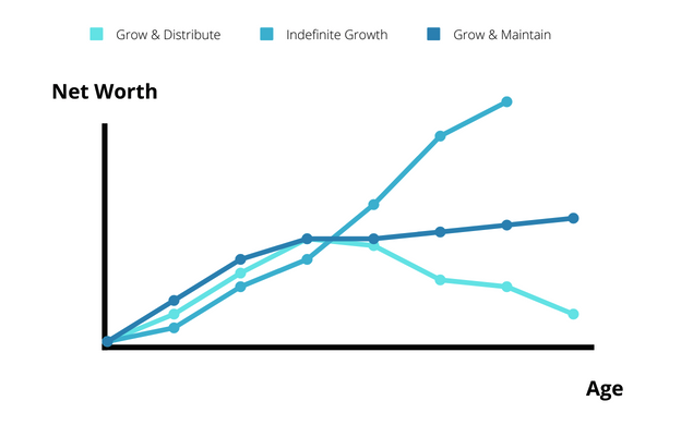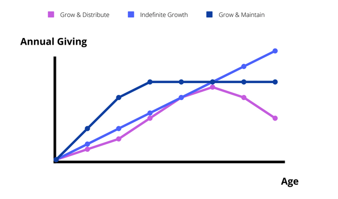 Once you’ve plotted that out, then you can plot out your giving goals over your lifetime, and see whether the two graphs correspond with each other. Do you envision your giving increasing as your wealth grows? Does it increase in proportion with your wealth growth, or does it eventually grow large enough to lead your net worth to decline?
